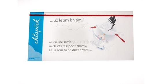 Darčeková karta s červenou šnúrkou proti urieknutiu pre chlapčeka