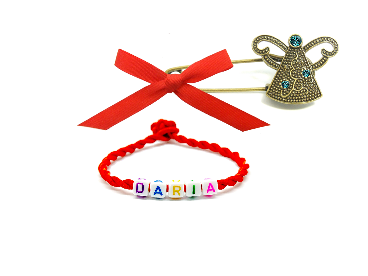 DETSKÝ SET proti urieknutiu obsahuje mašličku do kočíka, ktorá ochráni Vaše bábätko pred urieknutím a náš ručne vyrobený náramok s menom podla Vášho želania, ktorý vytvorí silný ochranný štít, náramok by sa mal nosiť na ľavej ruke pretože ľavá ruka a rameno sú prijímateľom všetkej energie - negatívnej či pozitívnej.