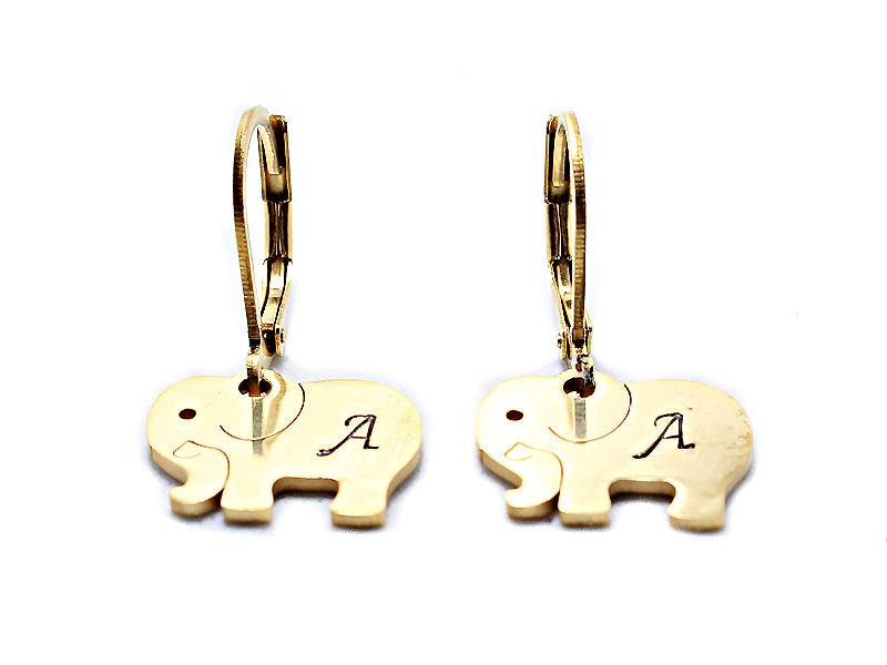 Náušnice s razeným príveskom sloníka / 10,7 mm x 13,9 mm /na prívesok Vám vyrazíme písmenko podľa Vášho želania vyberte si farbu príveska z našej ponuky a my Vám vyrobíme náušnice do detailov podľa Vašich predstáv. Náušnice, ktoré potešia ako milý darček, alebo len tak, lebo darované z úprimného srdiečka prináša radosť za každých okolnosti...náušnice sú ručne vyrobené s láskou a starostlivosťou.