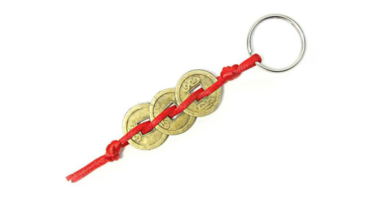 Ochranný prívesok s čínskymi mincami ako symbol prosperity a ochrany