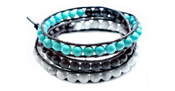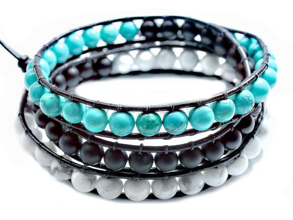 Wrap - náramok TYRKYS, MATNÝ ÓNYX , BIELY HOWLIT